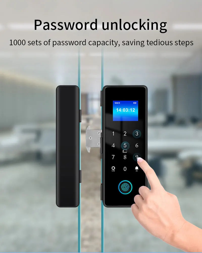 Intelligentes Fingerabdruck-Türschloss von Tuya, IP54, wasserdicht + Bluetooth-App-Steuerung für Glastüren, spezielles elektronisches Schloss, Fernentriegelung/Aufbruchschutz-Design.