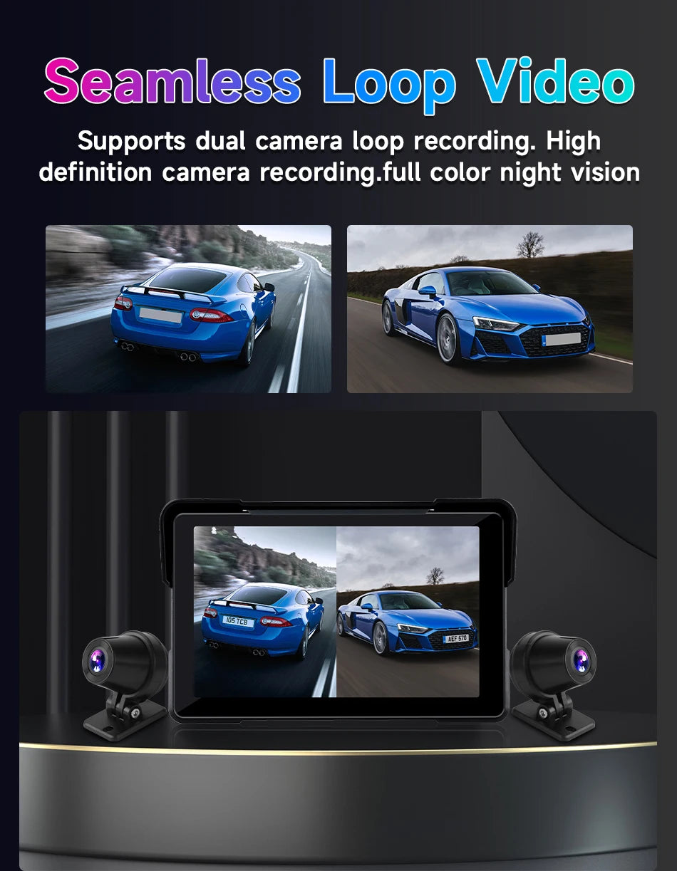 7-inch IPS Wireless CarPlay Motorcycle DVR - GPS Navigation & 4K Dual Camera System IP67.
